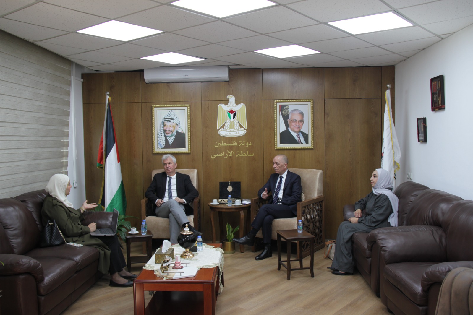 رام الله 26-12-2025 وفا- أطلع رئيس سلطة الأراضي الوزير علاء التميمي، المدير العالمي للاستجابة الطارئة في برنامج الأمم المتحدة للمستوطنات البشرية فيليب ديكورت.