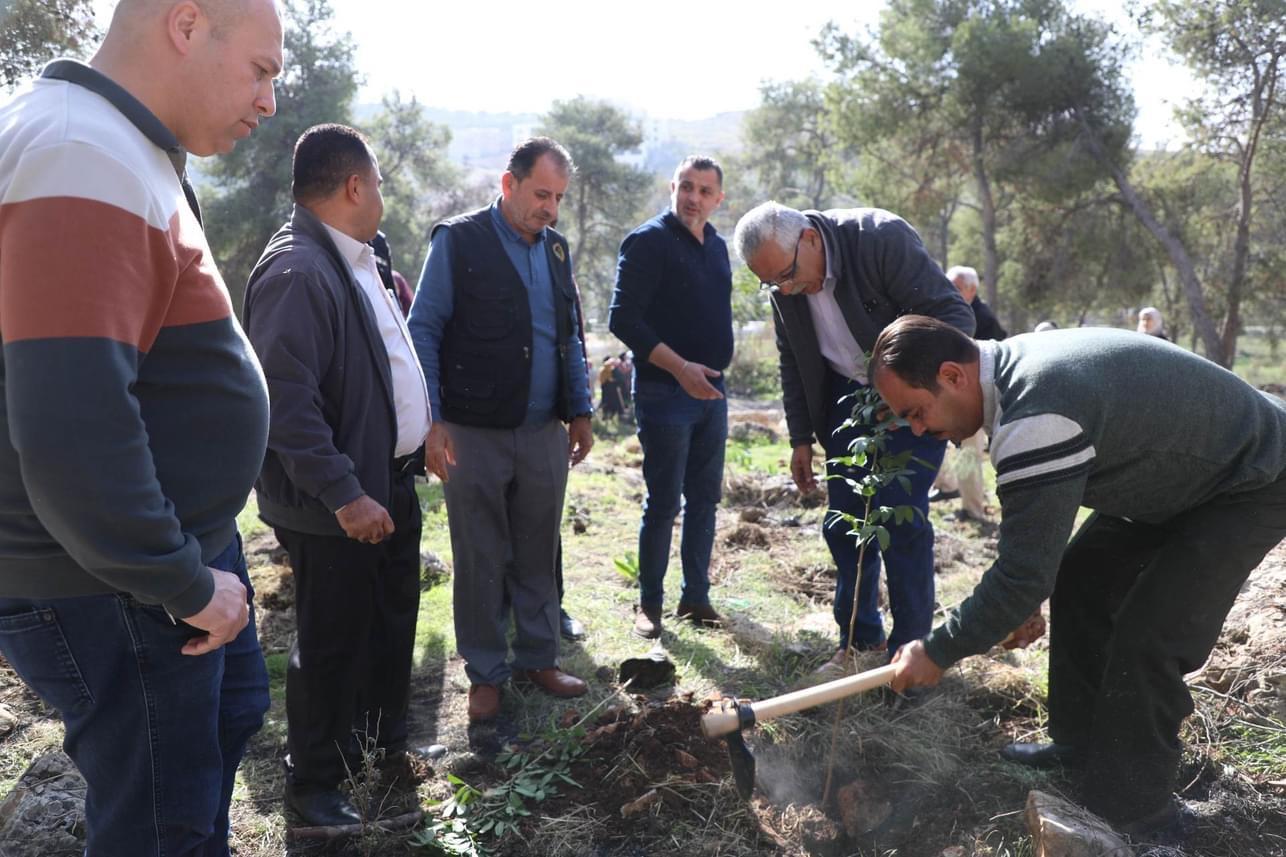 طولكرم 12-12-2022 وفا- شارك ممثلون عن المؤسسات الرسمية والشعبية ومتطوعون من طلبة الجامعات، في حملة لزراعة الأشجار الحرجية في أحراش عنبتا شرق طولكرم.