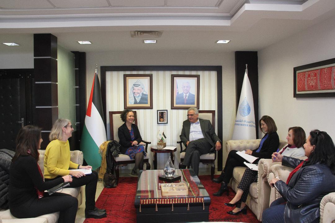 وناقش اللقاء جملة من القضايا مثل تطورات العمل في مشروع تأهيل شبكة مياه يطا، وكذلك محطة التحلية محدودة الحجم في جنوب قطاع غزة والاحتياجات اللازم تأمينها لضمان العمل فيها وتشغيلها بكفاءة، إضافة الى مناقشة مشاريع مستقبلية جديدة كالدراسات التي يتم العمل عليها بين الجانبين، مثل حساسية المصادر ومتابعة المشاريع المتعلقة بالمناخ الاخضر.