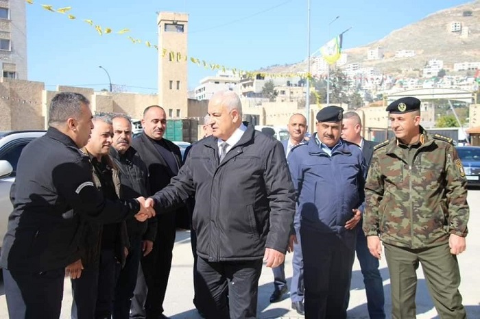 نابلس 23-1-2023 وفا- تفقد وزير الداخلية اللواء زياد هب الريح، اليوم الإثنين، عددا من المؤسسات في محافظة نابلس، والتقى المحافظ إبراهيم رمضان ومدراء الأجهزة الأمنية.
