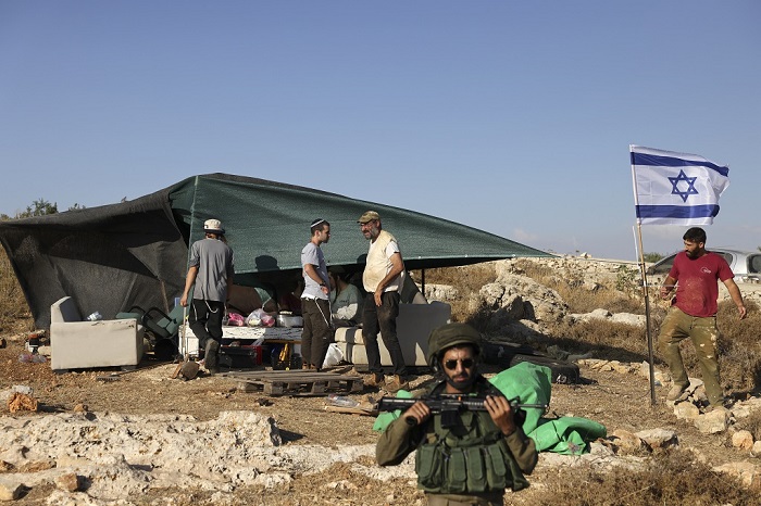 الخليل1-8-2023 وفا- نصب مستوطنون، اليوم الثلاثاء، خياما على أراضي المواطنين، شمال الخليل.