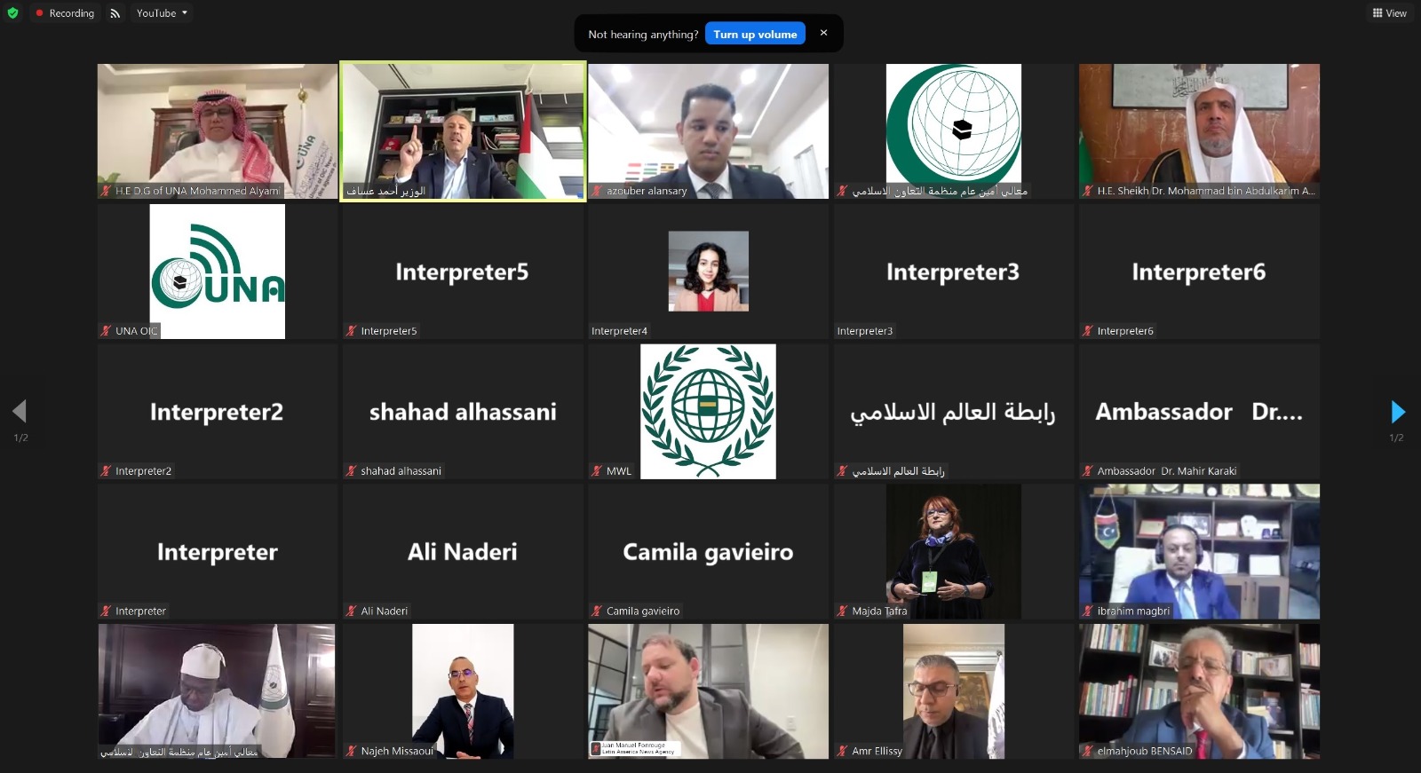 وشارك في اعمال المنتدى الذي عُقد افتراضيا عبر تطبيق "زووم"، الأمين العام لرابطة العالم الإسلامي الشيخ الدكتور محمد عبد الكريم العيسى، والأمين العام لمنظمة التعاون الإسلامي حسين إبراهيم طه، والمدير العام لاتحاد وكالات أنباء دول منظمة التعاون الإسلامي محمد اليامي.