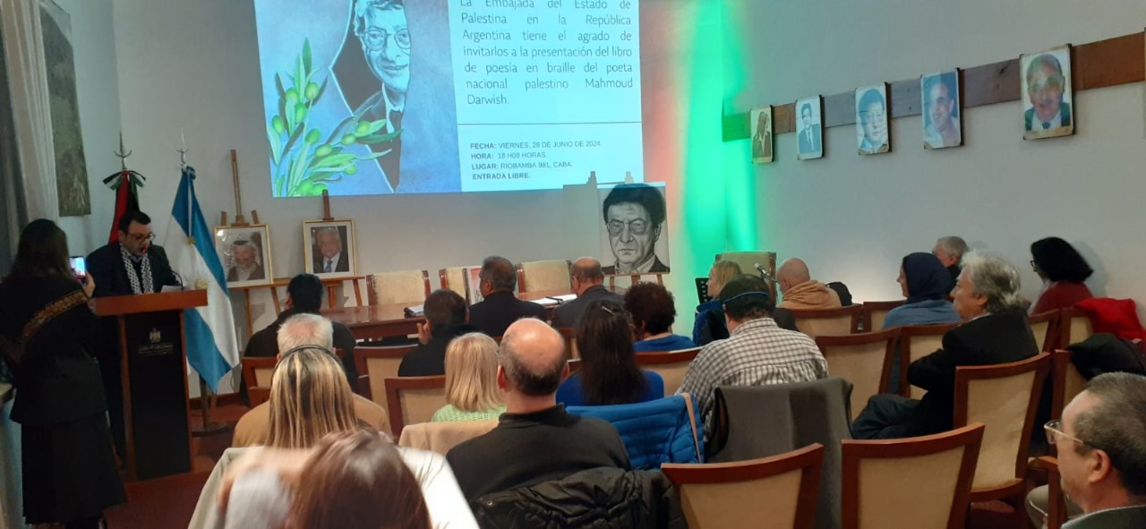 بوينس آيرس 1-7-2024 وفا- قدمت سفارة فلسطين لدى الأرجنتين، الكتاب الأول للشاعر الكبير محمود درويش بطريقة برايل للمكفوفين، في سابقة هي الأولى في الدول الناطقة بالإسبانية وفي العالم.