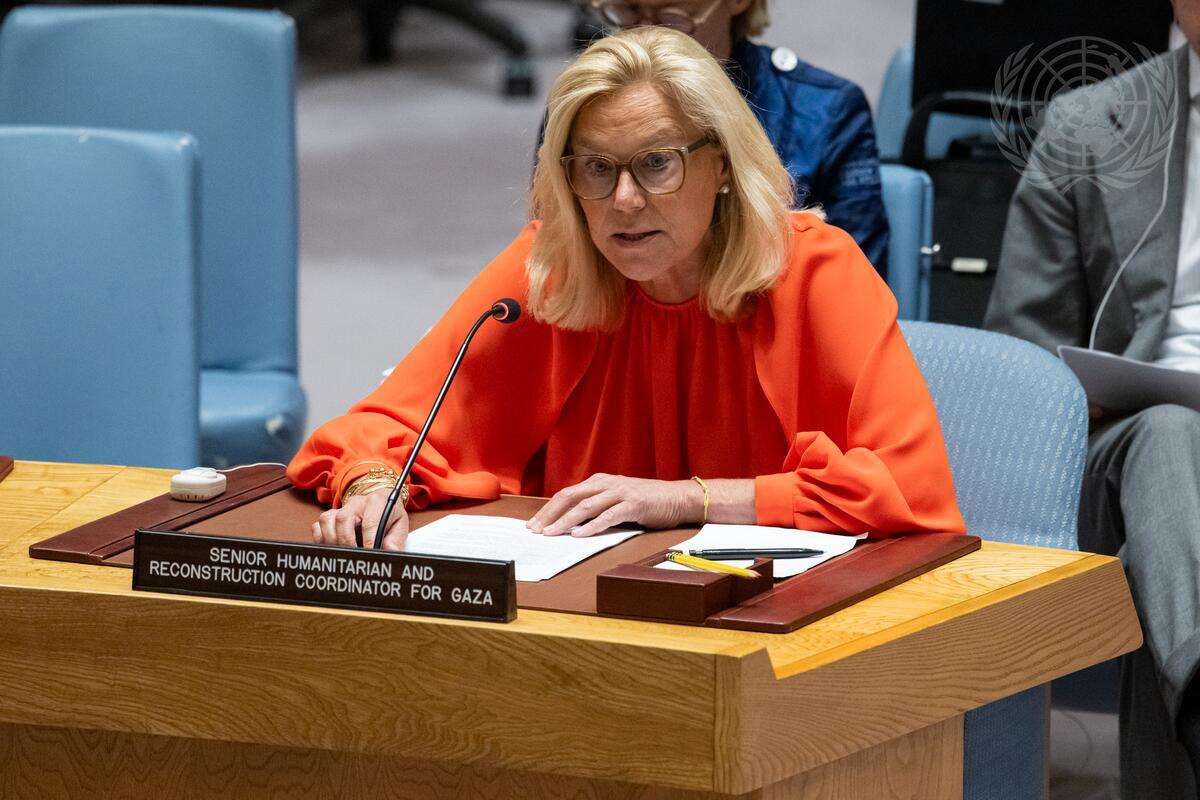 جاء ذلك في إحاطة قدمتها أمام مجلس الأمن الدولي، اليوم الثلاثاء، خلال جلسته حول الأوضاع في الشرق الأوسط، بما في ذلك القضية الفلسطينية، والتي ركزت على الظروف الإنسانية الصعبة في قطاع غزة مع تواصل العدوان الإسرائيلي منذ 9 أشهر.