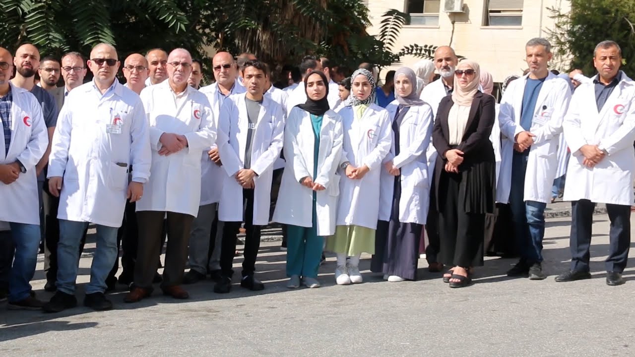 وقفة في الخليل استنكاراً لاستهداف القطاع الصحي بغزة