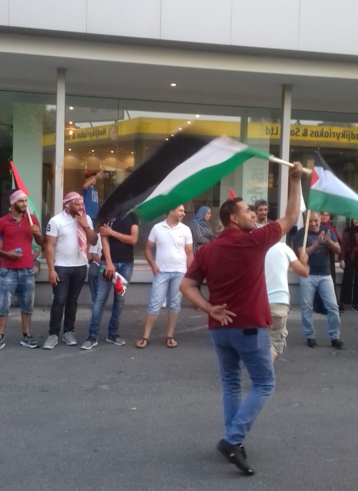 نيقوسيا 5-7-2020 وفا- شهدت العاصمة القبرصية نيقوسيا، اليوم الأحد، وقفة احتجاجية أمام السفارة الإسرائيلية، تنديدا بمخططات الضم ونهب الأراضي الفلسطينية وهضم حقوق شعبنا المشروعة.