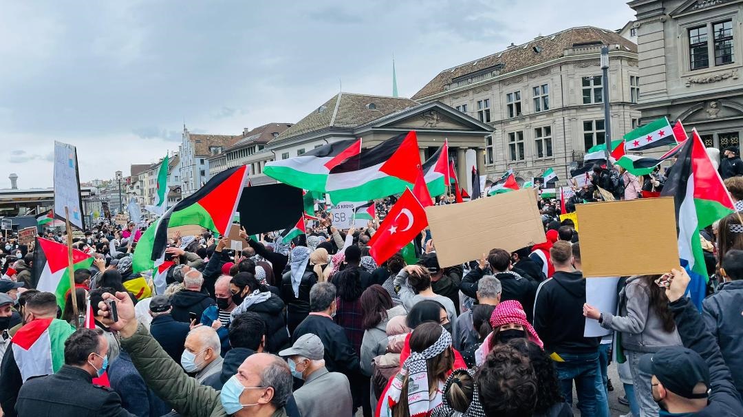 بيرن 15-5-2021 وفا- شارك المئات من أعضاء جمعية الصداقة السويسرية الفلسطينية، ومنظمات ومؤسسات المجتمع المدني في سويسرا وأبناء الجالية الفلسطينية والجالية العربية والإسلامية، والعديد من المتضامنين سويسريين في عدة مسيرات في وسط مدن: زيورخ وبازل وجنيف أمام مقر الامم المتحدة في جنيف، تنديدا بالعدوان الإسرائيلي على قطاع غزة وعلى الشعب الفلسطيني.