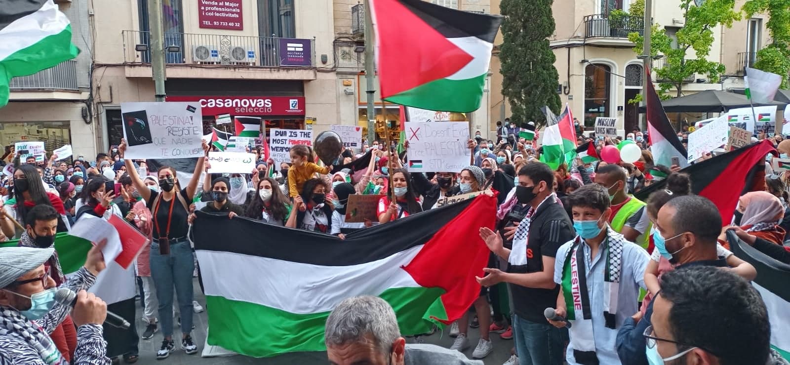 كما تضامنت مدينة تاراسا، بإقليم كتالونيا، من خلال وقفة نظمتها الجاليات الفلسطينية والعربية والأحزاب والنقابات الإسبانية الداعمة لقضيتنا الفلسطينية، وطالب مشاركون في كلمات لهم بمحاكمة إسرائيل دوليا على الجرائم التي نفذتها في قطاع غزة وحي الشيخ جراح والقدس والضفة الغربية وفي مدن الـ٤٨، وبإقامة الدولة الفلسطينية وعاصمتها القدس الشرقية.