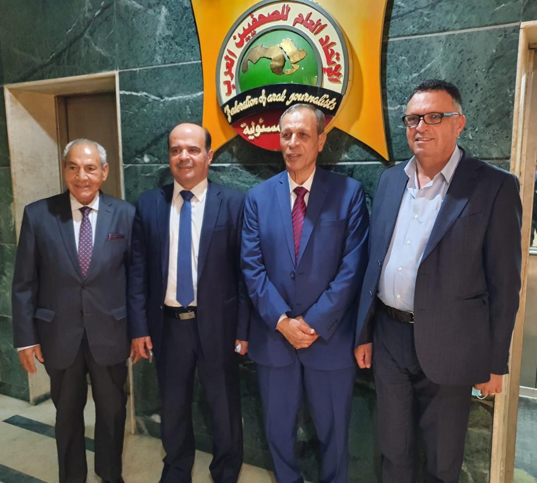 جاء ذلك خلال الاجتماع الذي عقد في مقر اتحاد الصحفيين العرب اليوم الثلاثاء، بحضور نائب رئيس الاتحاد ناصر أبو بكر، ومساعد رئيس الاتحاد حاتم زكريا، ومدير عام الاتحاد السفير فتحي يوسف.
