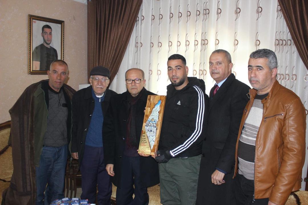 وسلم الوفد درع الحرية للمحرر حنايشة، متمنين الإفراج العاجل عن جميع أسرانا البواسل من معتقلات الاحتلال.