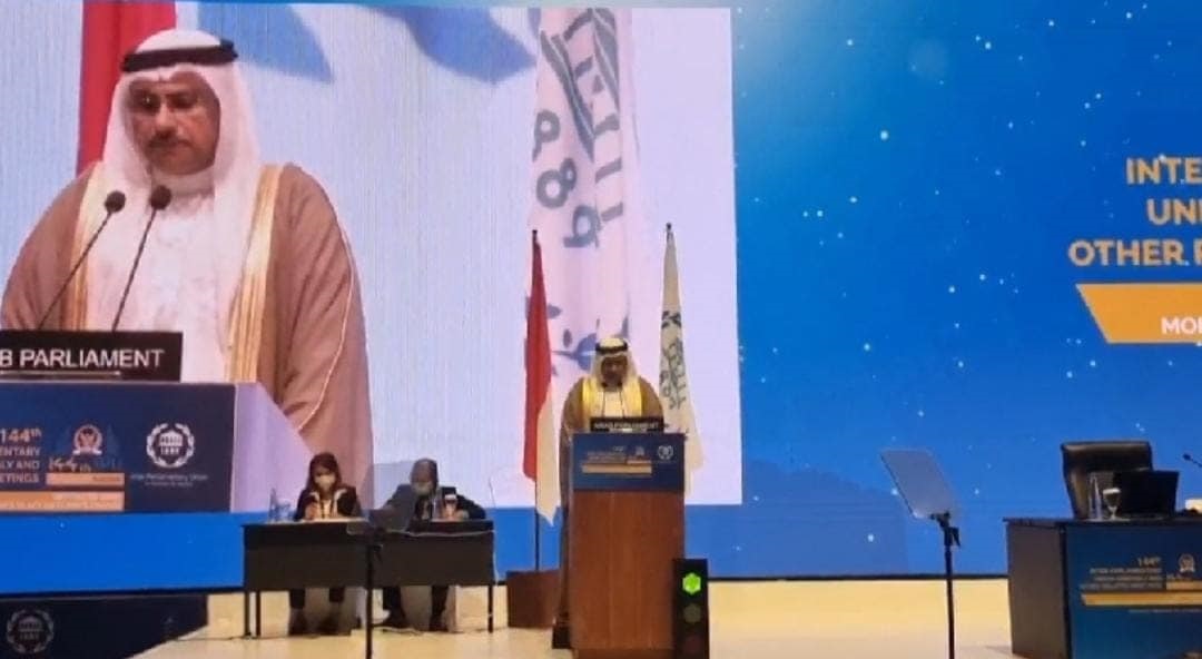 وقال العسومي، في كلمته أمام الجمعية الـ144 للاتحاد البرلماني الدولي بمدينة بالي في أندونيسيا، "لقد انتفض العالم خلال الفترة القليلة الماضية بسبب التطورات الجارية على صعيد الأزمة الروسية الأوكرانية، ونحن بالطبع لسنا مع انتهاك سيادة أي دولة أو الاعتداء عليها بأي شكل من الأشكال، لكننا نود التأكيد على أن هناك شعبا يتعرض لأبغض أشكال الاحتلال على مدار سبعة عقود مضت، هو الشعب الفلسطيني، ولم يُحرك العالم ساكنا من أجل إنهاء معاناة هذا الشعب وإقامة دولته المستقلة".