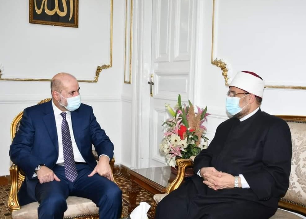 القاهرة 29-3-2022 وفا- التقى قاضي قضاة فلسطين ومستشار الرئيس للشؤون الدينة والعلاقات الإسلامية محمود الهباش، اليوم الثلاثاء، وزير الأوقاف المصري محمد مختار جمعة، بمقر الوزارة في العاصمة المصرية القاهرة.