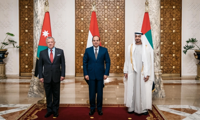 وتناولت القمة التي جمعت الرئيس المصري عبد الفتاح السيسي، والعاهل الأردني الملك عبد الله الثاني، وولي عهد أبو ظبي الشيخ محمد بن زايد آل نهيان، آخر المستجدات العالمية والإقليمية وفي مقدمتها القضية الفلسطينية، إذ شدد القادة على أن بلدانهم لن تدخر جهداً في العمل من أجل استعادة التهدئة في القدس، ووقف التصعيد بأشكاله كافة من أجل تمكين المصلين من أداء شعائرهم الدينية بدون معيقات أو مضايقات.