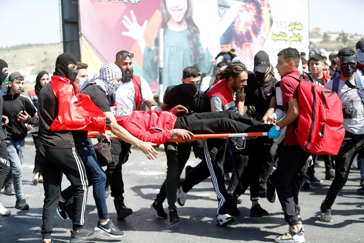 وأفادت جمعية الهلال الأحمر الفلسطيني، في بيان صحفي، بأن طواقمها تعاملت مع 45 إصابة بينها 7 إصابات بالرصاص الحي نقلت الى مستشفى رام الله، و13 اصابة بالرصاص المعدني المغلف بالمطاط، واصابة بحروق، وأخرى جراء السقوط، و20 اصابة اختناقا بالغاز، على المدخل الشمالي لمدينة البيرة.