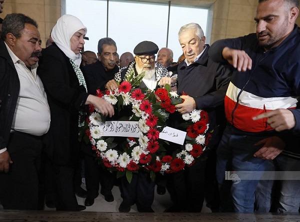 وكان في استقباله نائب رئيس حركة "فتح" محمود العالول، وأعضاء من اللجنتين التنفيذية لمنظمة التحرير والمركزية لحركة "فتح"، وأعضاء من المجلس الثوري للحركة، وممثلو فصائل العمل الوطني، وحشد من أبناء شعبنا.