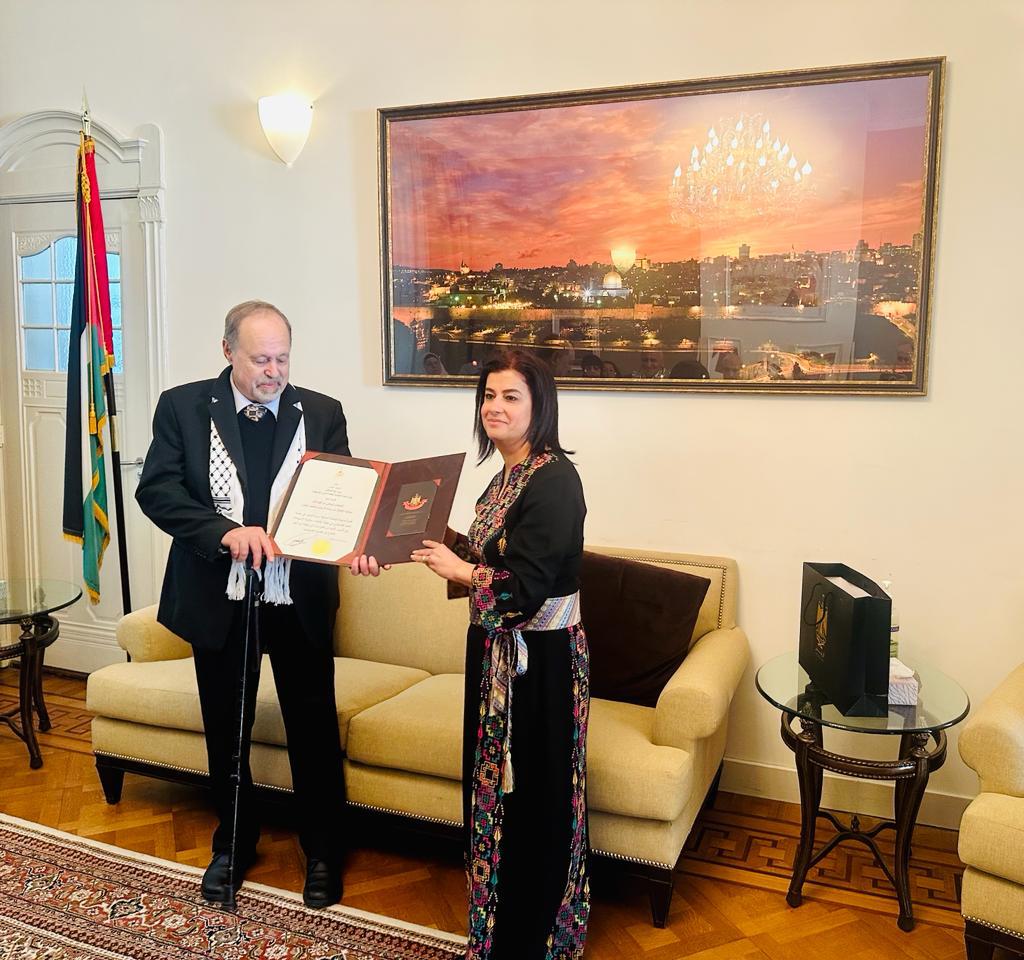 من جهته، أعرب الباز عن بالغ اعتزازه وتقديره لسيادة الرئيس محمود عباس لمنحه هذا الوسام، وتقدم بالشكر للسفيرة سليمان على تقليدها الوسام نيابة عن الرئيس، مؤكدا عزمه وإصراره في الاستمرار بمسيرته لحشد الدعم اللازم لقضيتنا ولحقوق شعبنا، من خلال العمل مع مختلف المؤسسات والجهات الهولندية والفلسطينية الفاعلة والمؤثرة على الساحة الهولندية.