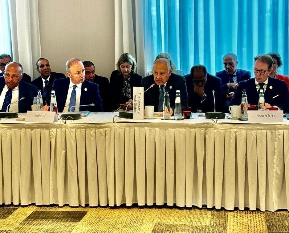 كما وجه أبو الغيط الشكر إلى وزراء خارجية كل من إيرلندا والنرويج وإسبانيا على اتخاذ دولهم خطوة الاعتراف بالدولة الفلسطينية المستقلة، منوها إلى أن هناك توجها بشكل جماعي إلى عقد مؤتمر دولي لتنفيذ حل الدولتين باعتباره السبيل الوحيد لإنقاذ المنطقة من صراع عنيف ممتد ومستمر يدفع الجميع ثمنه وفي مقدمتهم الشعب الفلسطيني.