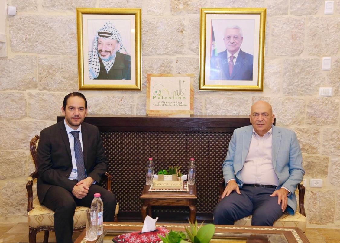 بيت لحم 27-5-2024 وفا- بحث وزير السياحة والآثار هاني الحايك، والقنصل الفرنسي العام في القدس نيكولاس كاسيانيدس، سبل التعاون الثنائي في حفظ التراث الثقافي.