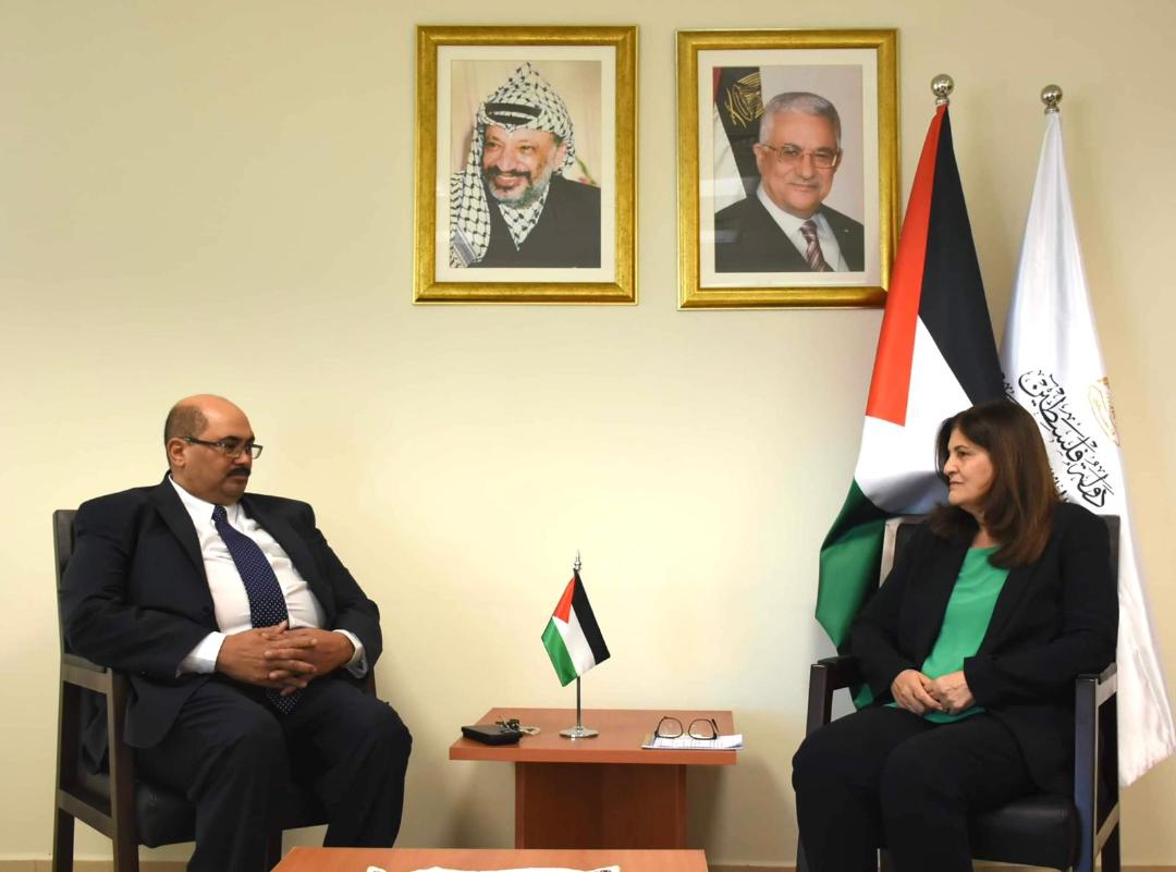 وأكدت خلال اللقاء الذي جمعهما في مقر الوزارة، أن دولة فلسطين تثمن بشكل كبير الموقف التاريخي لجنوب إفريقيا ومرافعتها ضد الاحتلال في محكمة العدل الدولية، ومواقفها المتتالية الداعمة لدولة فلسطين في جميع المحافل الدولية.