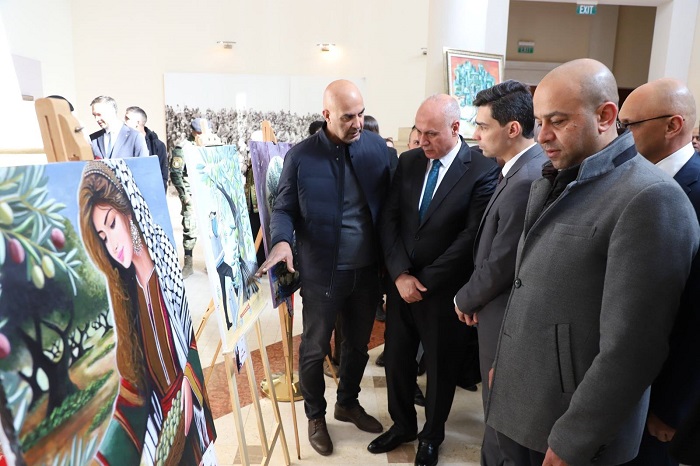 وزير الثقافة ومحافظ أريحا يفتتحان معرض الفن التشكيلي "بصمات عطاء" في المتحف الروسي