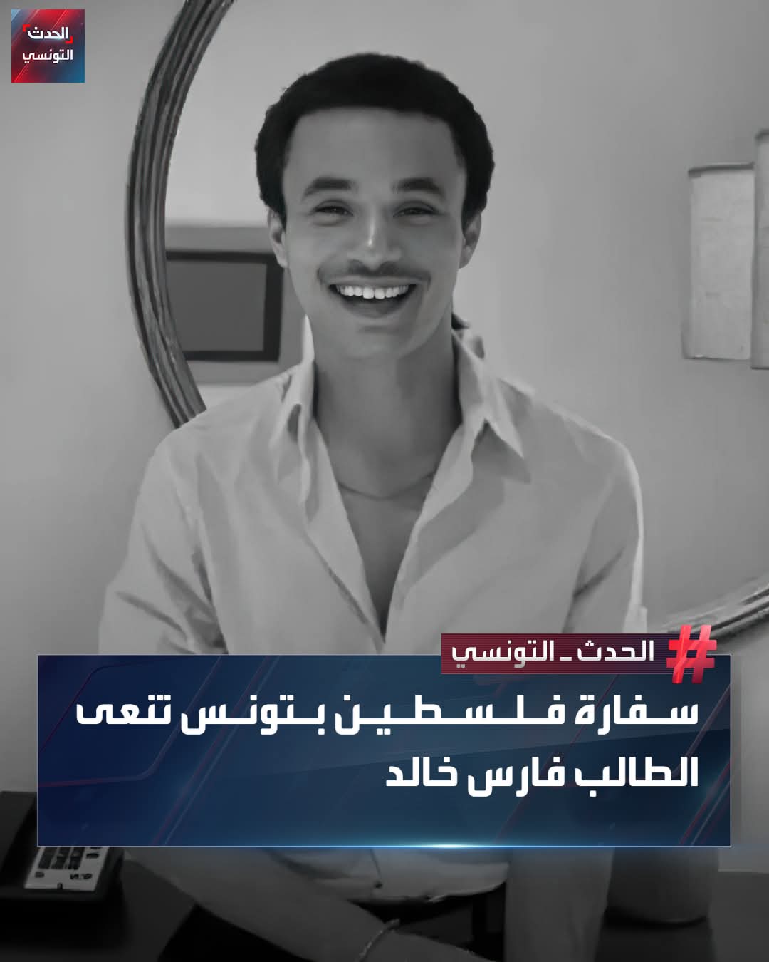 تونس 7-4-2025 وفا- نعت سفارة دولة فلسطين في تونس، اليوم الاثنين، الطالب فارس خالد، (21 عاما)، والذي توفي إثر حادث أليم أثناء محاولته تعليق علم فلسطين فوق بناية بالمدرسة العليا لعلوم وتكنولوجيات التصميم بالدندان.