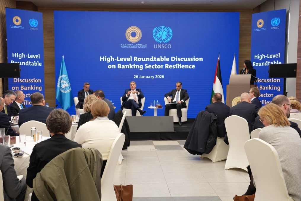 رام الله 26-1-2026 وفا- عقدت سلطة النقد الفلسطينية، بالتعاون مع مكتب المنسق الخاص للأمم المتحدة لعملية السلام في الشرق الأوسط، لقاءً حوارياً شارك فيه أكثر من 16 سفيراً وممثلين عن أكثر من 27 دولة، إضافة إلى عدد من ممثلي المؤسسات المالية والمصرفية الدولية ذات العلاقة.