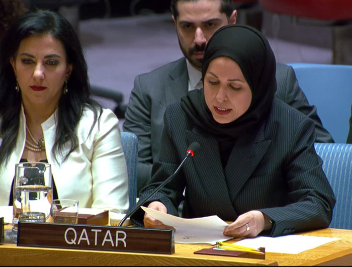 أكدت مندوبة قطر أن "إسرائيل لا تملك أي سيادة على الأرض الفلسطينية المحتلة"، محذّرة من أن سياساتها التوسعية وإجراءاتها غير القانونية في الضفة الغربية المحتلة تشكّل انتهاكاً صارخاً للقانون الدولي وتقوّض حلّ الدولتين.