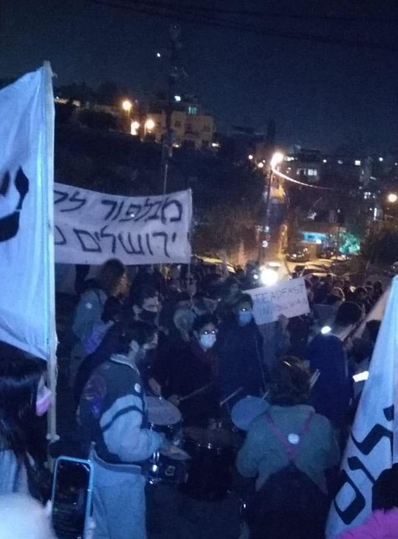 القدس 6-2-2021 وفا- نظم عشرات المواطنين من أبناء شعبنا في القدس، ونشطاء دوليين ضد الاستيطان وحركة السلام الآن الإسرائيلية، مساء اليوم السبت، وقفة احتجاجية ضد الاستيلاء على البيوت من قبل المستوطنين، وهدم منازل المقدسيين.