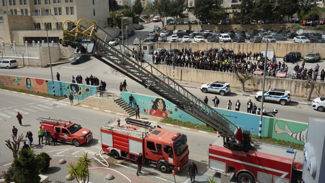 يشار إلى أن هذا التمرين نفذ في اختتام فعاليات اليوم العالمي للدفاع المدني، بالشراكة مع الشرطة والخدمات الطبية والهلال الأحمر، وشركة كهرباء القدس والمتطوعين، وفرق السلامة العامة في البنوك المذكورة.