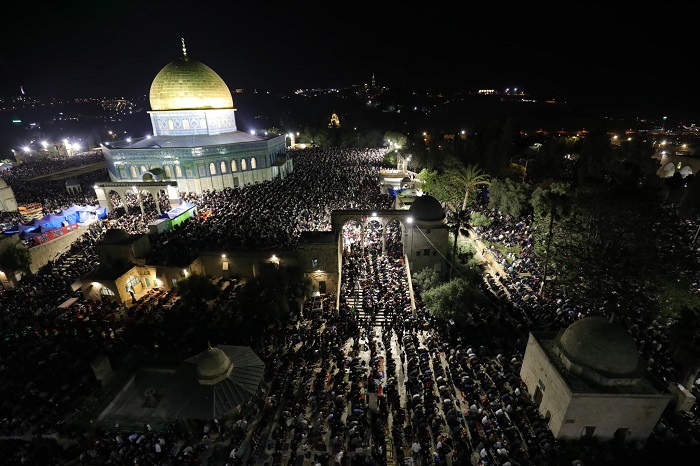 القدس 17-4-2023 وفا- أحيا 280 ألف مصل ليلة القدر (ليلة السابع والعشرين من شهر رمضان)، في رحاب المسجد الأقصى المبارك.
