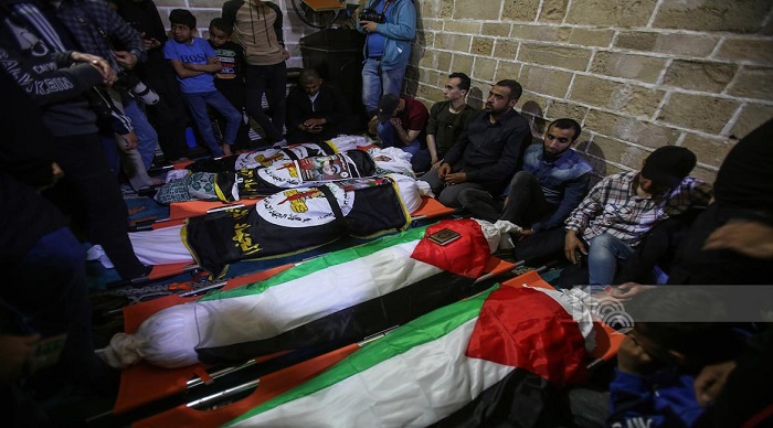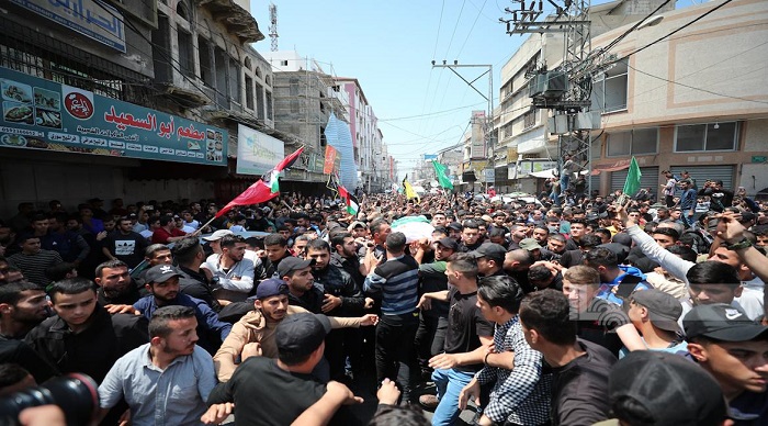 غزة 9-5-2023 وفا- شيّع الآلاف من أبناء شعبنا في قطاع غزة جثامين ثلاثة عشر شهيداً بينهم أطفال ونساء، ارتقوا جراء قصف طائرات الاحتلال الإسرائيلي مناطق عدة في القطاع، فجر اليوم الثلاثاء.