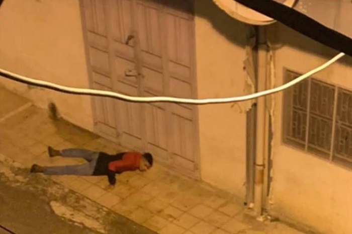 الطفل عمر أبو بكر ملقى على الأرض عقب إصابته برصاص الاحتلال