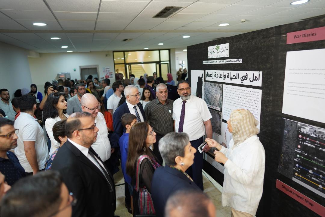 رام الله 9-7-2024 وفا- افتتحت دائرة الهندسة المعمارية والتخطيط- كلية الهندسة والتكنولوجيا في جامعة بيرزيت، اليوم الثلاثاء، معرضا بعنوان "إبداعات طلبة غزة: أملٌ في الحياة وإعادة إعمار"، وهو إحدى مخرجات مبادرة " إعادة الأمل" التي أطلقتها الجامعة.